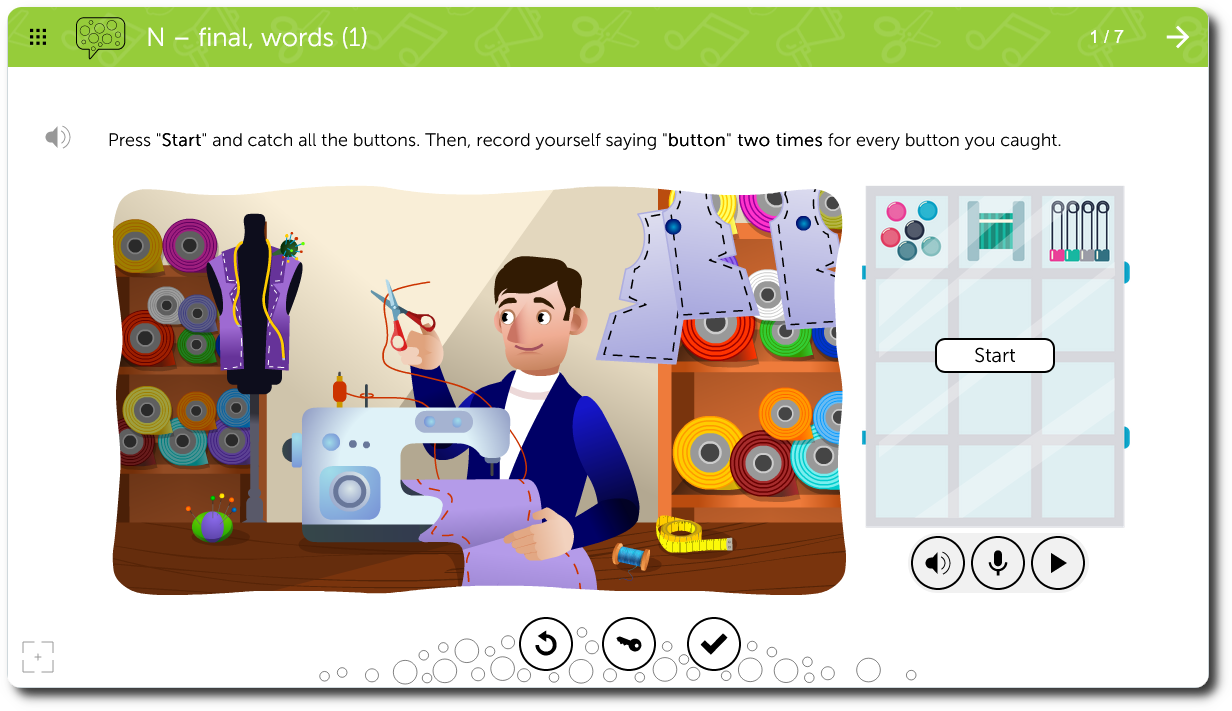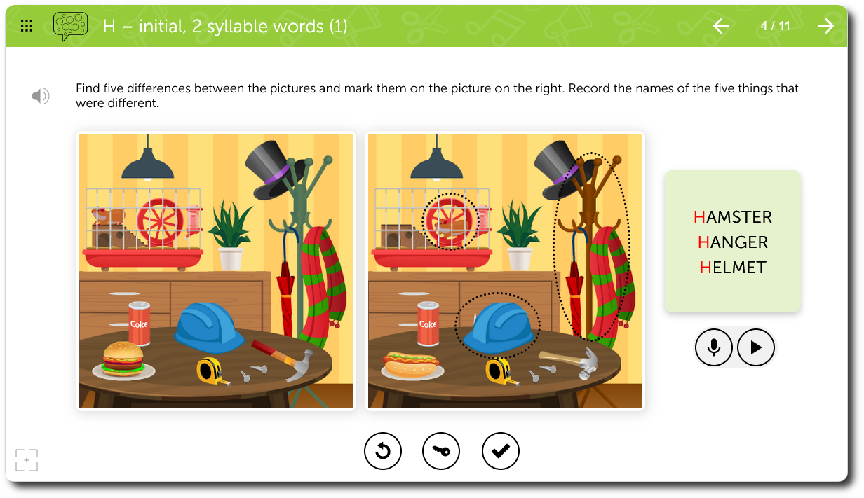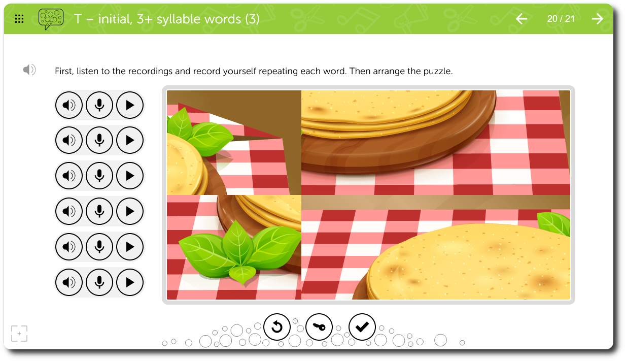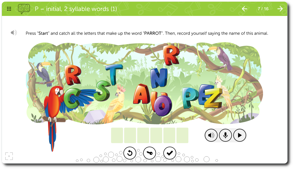 Multiple opportunities to practice a target phoneme including recording for auditory feedback