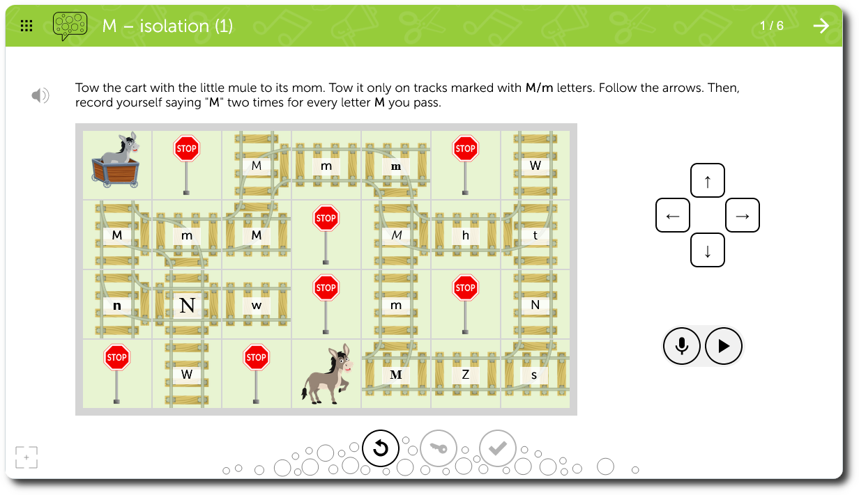 An easily navigable library organized by phoneme, starting with sound practice at the isolation level through oral reading