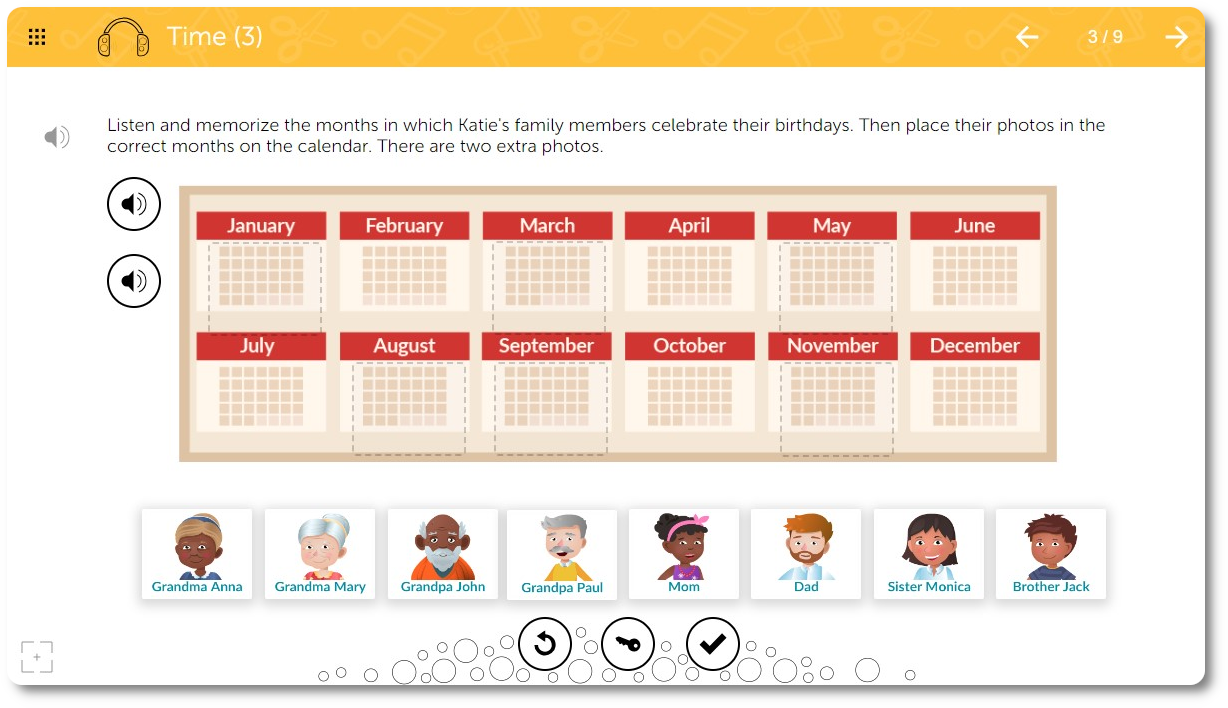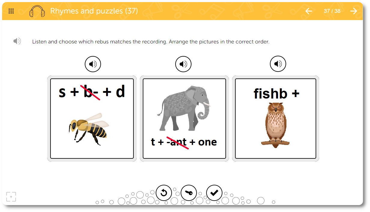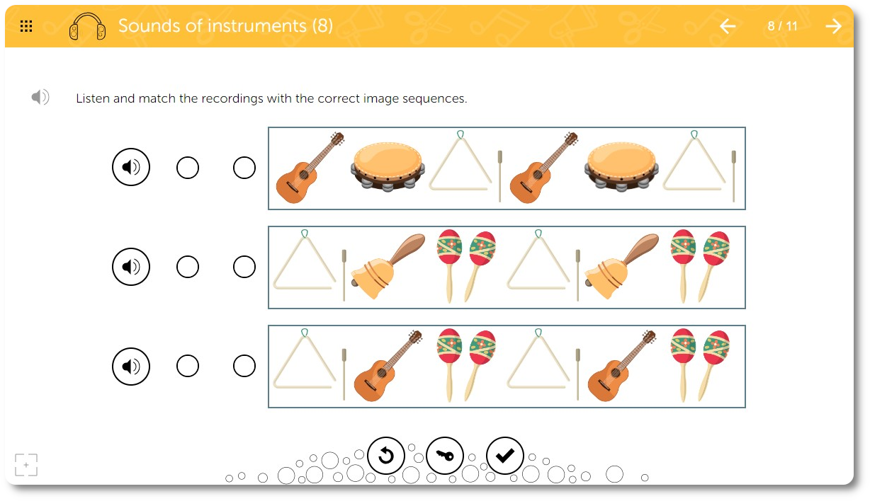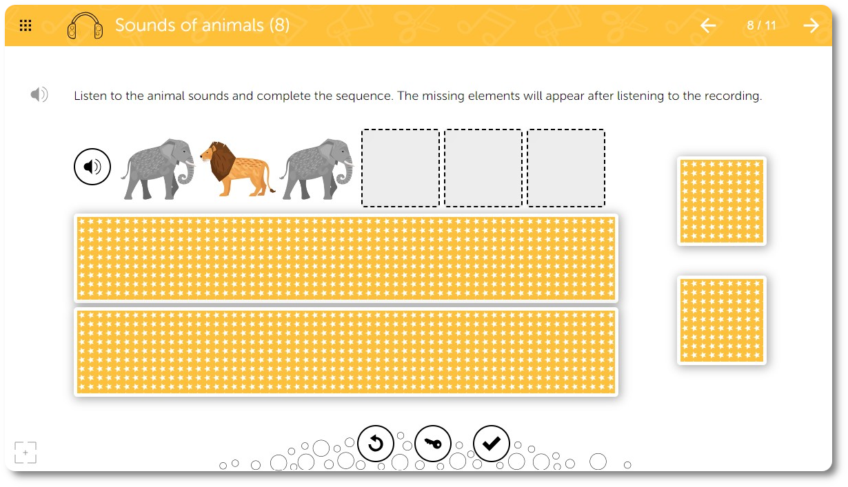 The material in the Learnigo EDU & SLP: Auditory Perception program is arranged according to the level of difficulty.