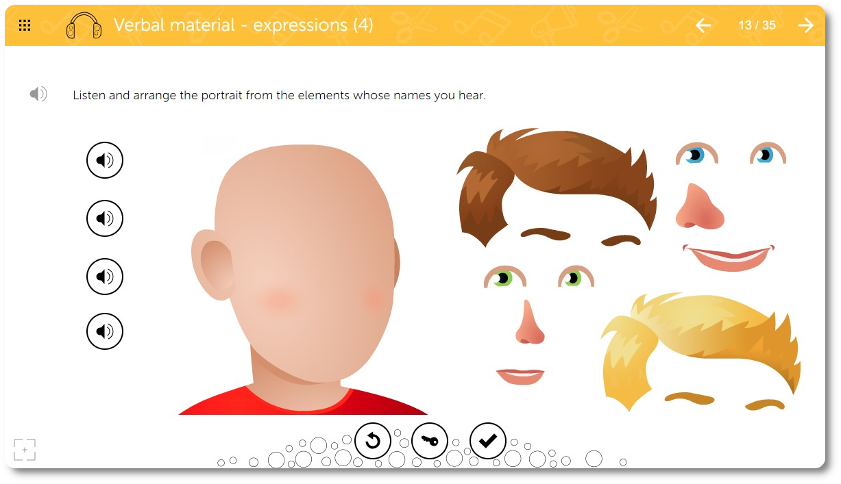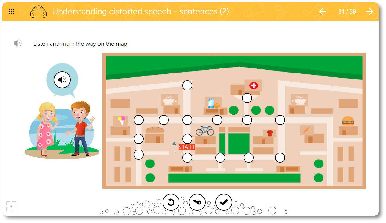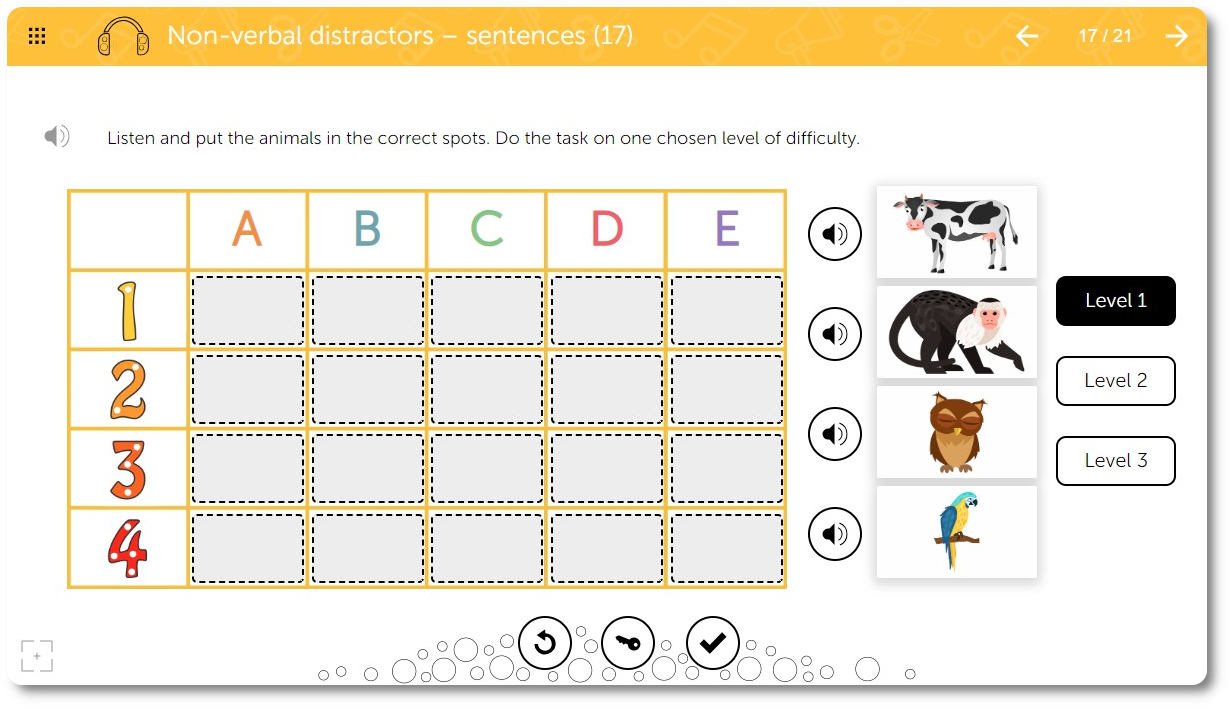 The program is designed for use in special education settings as well as speech therapy. The program aims to support active training and stimulation of higher auditory functions in children showing symptoms of central auditory processing disorder (CAPD). It can be used for corrective and compensatory work, but also for progress monitoring, as well as with other work intended to stimulate higher auditory functions in children with difficulties in learning, writing, and reading, and in children with co-existing emotional disorders that may be due to impaired sound analysis at a central level. This program is intended for therapists, including speech therapists and teachers working with pre-school and elementary school children, aged 5+ (within typical developmental norms) or regardless of age in the case of children with intellectual disabilities.