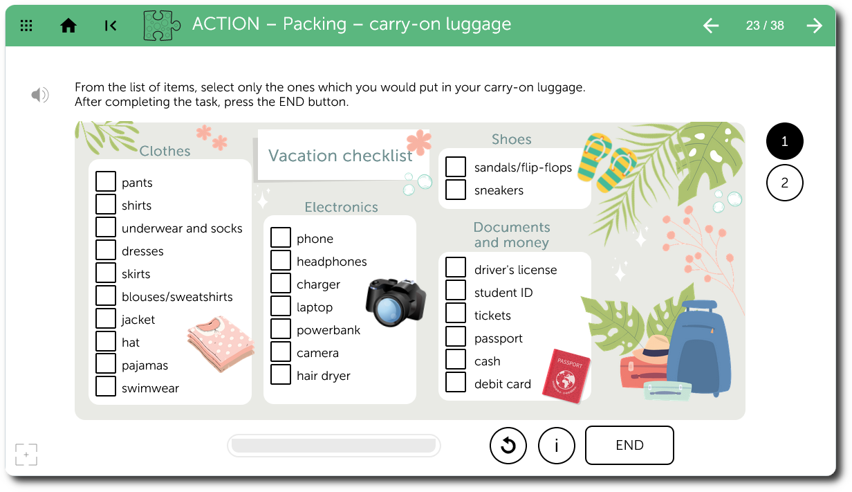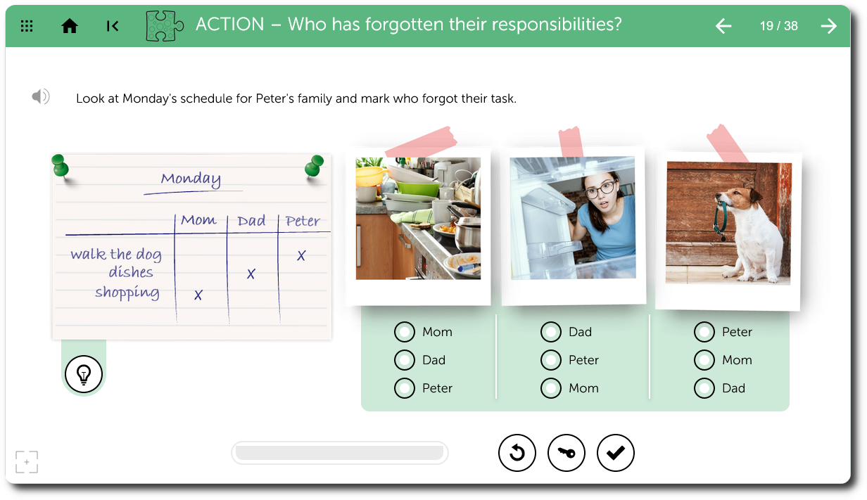 The Learnigo Life Skills program includes the following dedicated exercise sections: