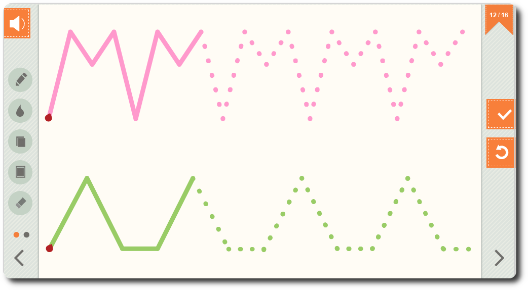 The Learnigo EDU & OT: Handwriting program also includes many exercises where focus and attention are key elements. These include many drawing exercises in which various parameters are scored, such as drawing in a given direction, drawing without lifting the hand, the number of points through which the line has been drawn, etc.