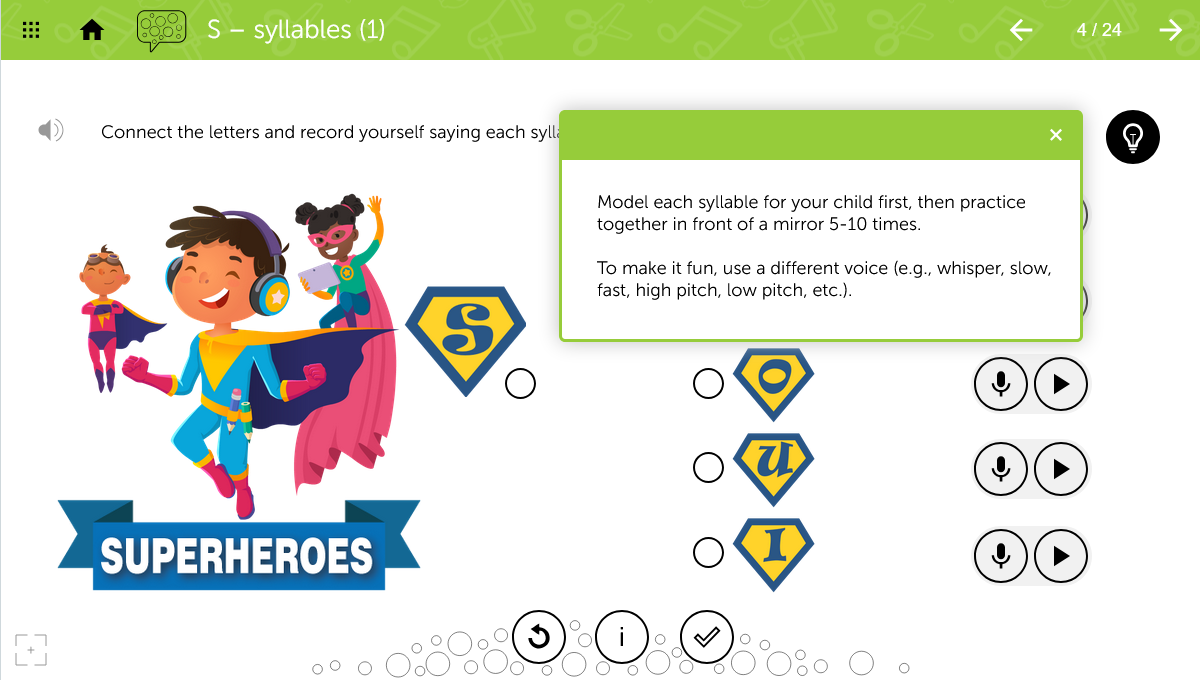 A flexible learning experience with three specialized courses, allowing families to focus on the speech sounds most relevant to their child’s needs.