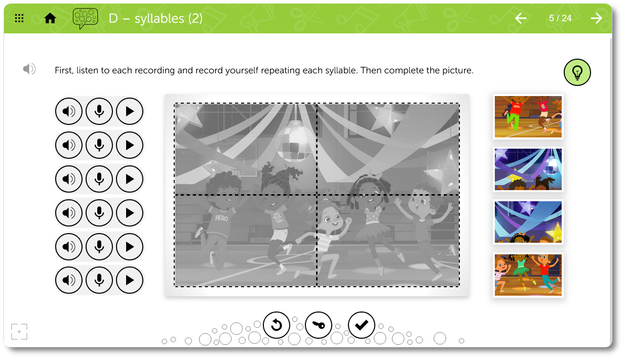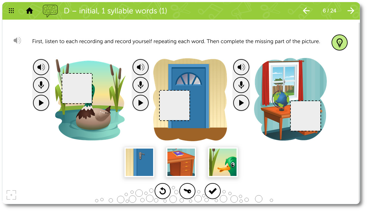Sounds in Isolation: Learners begin by practicing each sound on its own to build accuracy.