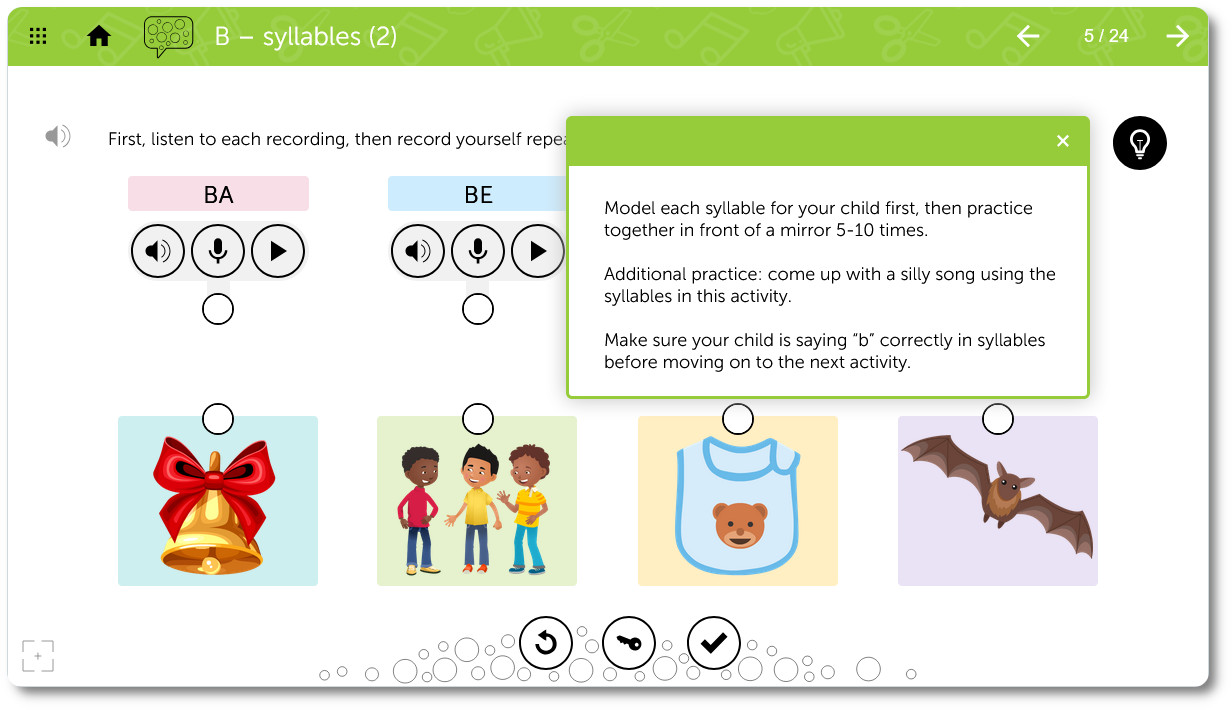 Learnigo at Home: Our top resources are now condensed into bite-sized practices, perfect for learning at home. We've included plenty of parent-friendly tips and resources to make at-home progress simple and effective. These tools are also great for therapists and teachers to recommend and collaborate on with parents, ensuring continuous learning outside of the classroom.