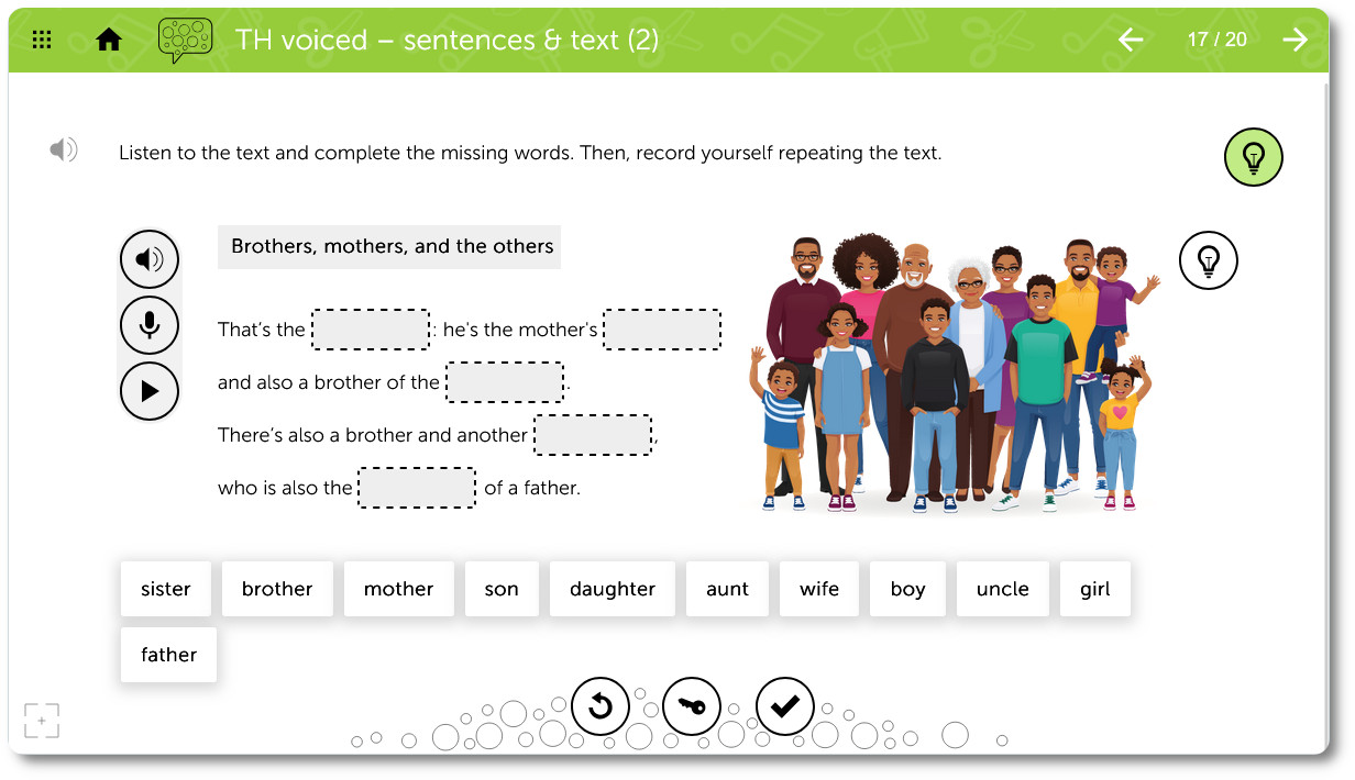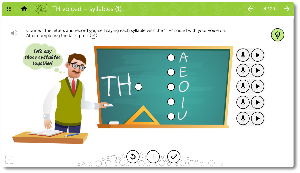 Sounds in Isolation: Learners begin with focused drills to ensure clear and accurate production of each sound.