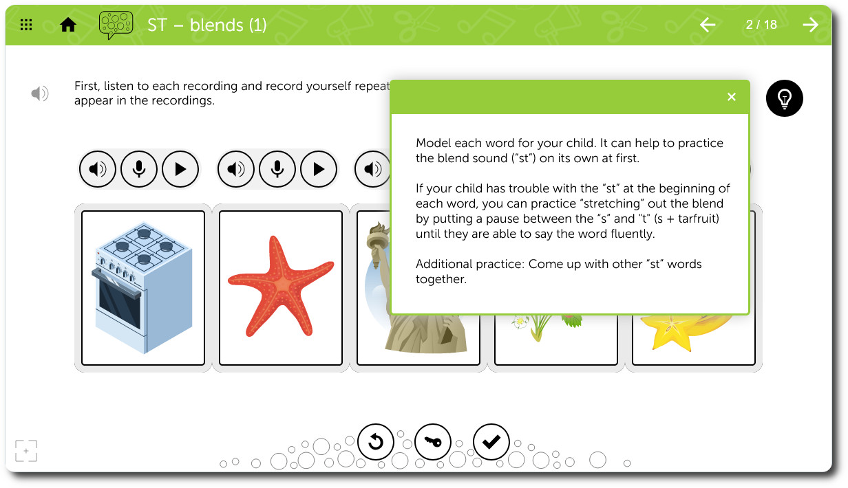 Learnigo at Home: Our top resources are now condensed into bite-sized practices, perfect for learning at home. We've included plenty of parent-friendly tips and resources to make at-home progress simple and effective. These tools are also great for therapists and teachers to recommend and collaborate on with parents, ensuring continuous learning outside of the classroom.