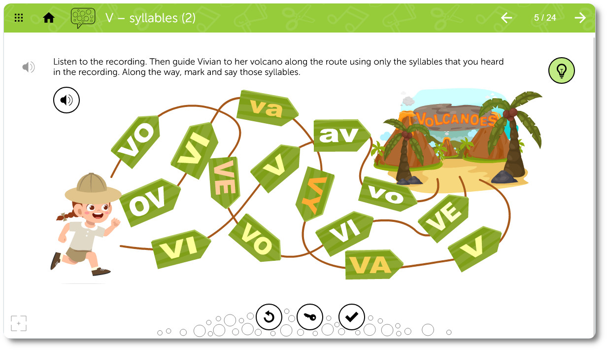 Syllables and Words: Learners practice sounds in syllables and then in words. All positions—initial, medial, final, and mixed—are addressed to ensure versatility in different contexts.